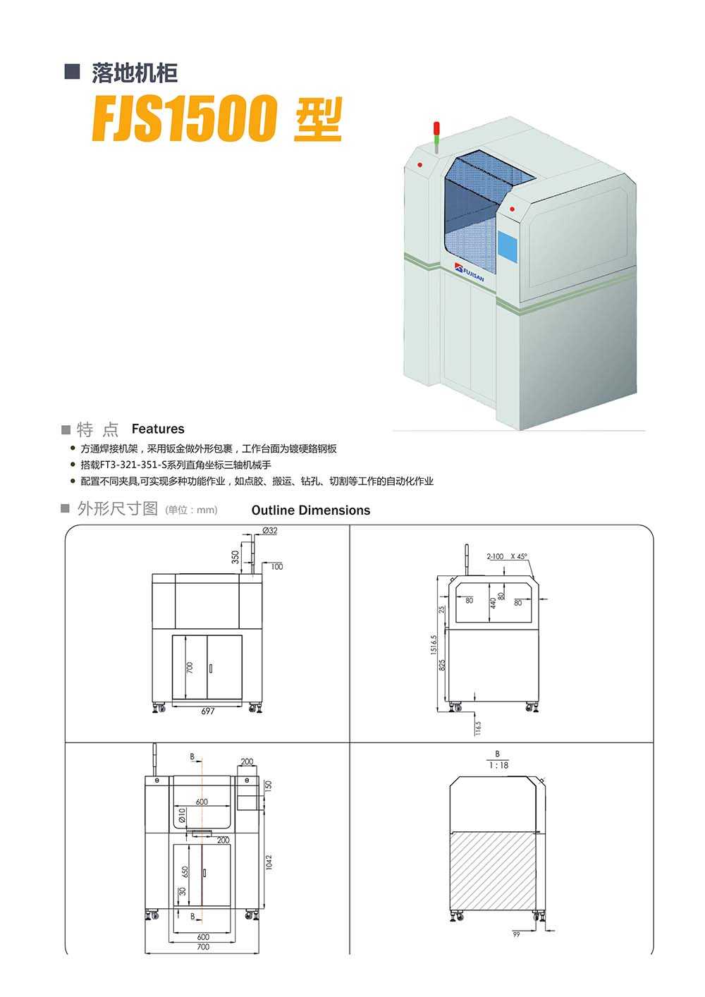 所屬型號:FJS1500 所屬品牌:福士工業 所屬分類:落地機柜 應用領域:紡織行業 電梯行業 機床行業